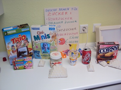 Insbesondere im Schulunterricht erarbeitetes Grundwissen über Zähne, Mundhöhle, Kariesentstehung etc. kann hierbei anschaulich demonstriert werden. Wir führen selbstverständlich keine körperlichen Untersuchungen durch, vielmehr lassen wir die stets sehr interessierten Kinder an sich selbst "Zähne zählen" und "Lücken und Wackelzähne aufschreiben". Auch ein wenig Ernährungskunde gehört zu diesem gut eine Stunde dauernden Parcours, bei dem unser gesamtes Team im Einsatz ist.