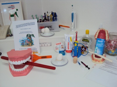 Aufgrund der Tatsache, dass das öffentliche Gesundheitswesen besonders in unserer Stadt durch den schwierigen Finanzrahmen nicht übermäßig viel an Gruppenprohylaxe (Betreuung/Reihenuntersuchungen in Schulen, Kindergärten, Kindertagestätten) leisten kann, sind viele Zahnärzte in Eigeninitiative tätig geworden und besuchen diese Bildungseinrichtungen oder laden jeweils ganze Klassen/Gruppen zu sich in die Praxis ein, um in spielerischem Rahmen die Wichtigkeit der Zahnmedizin für die Allgemeingesundheit herauszustellen.